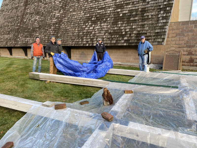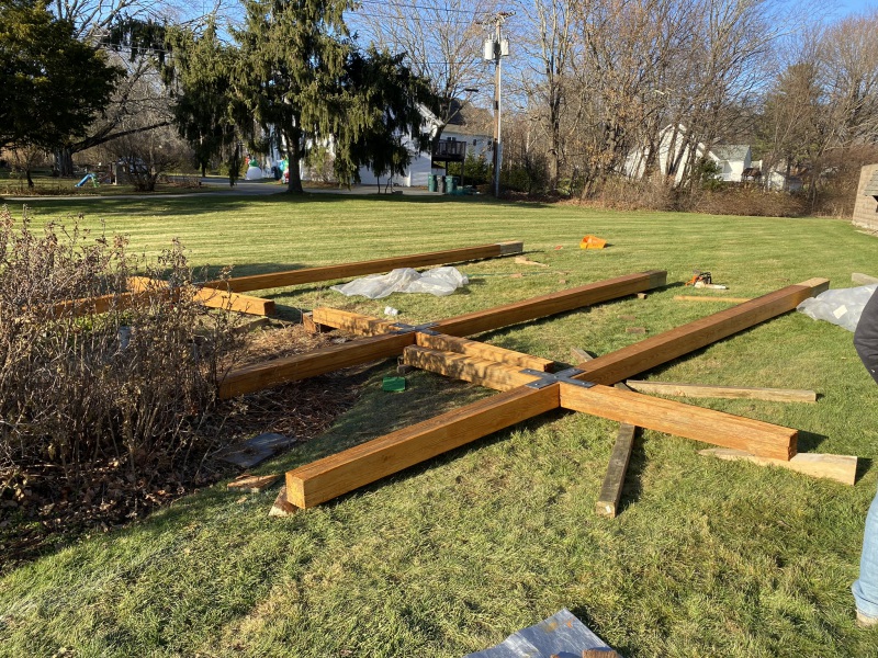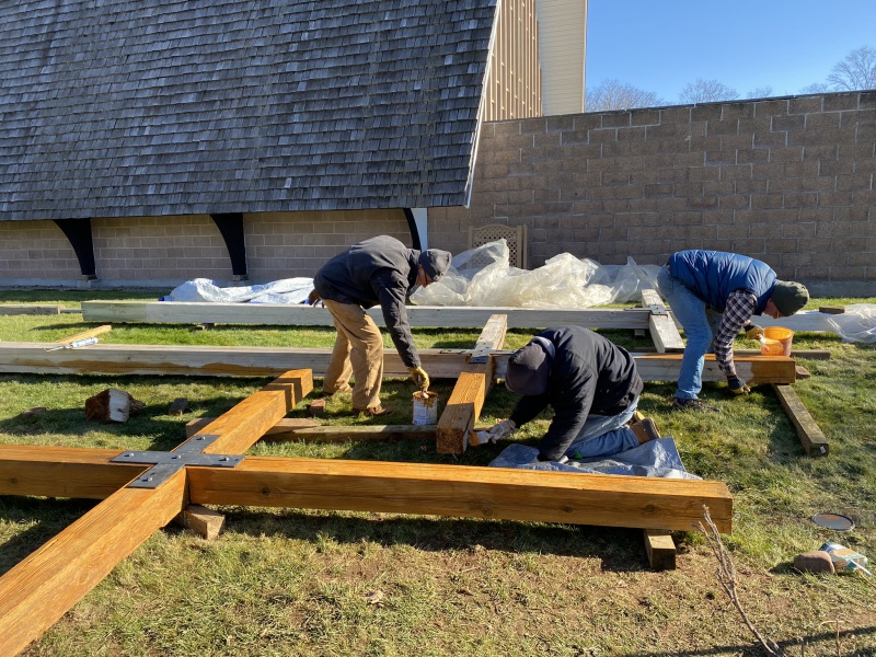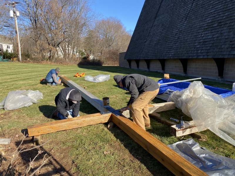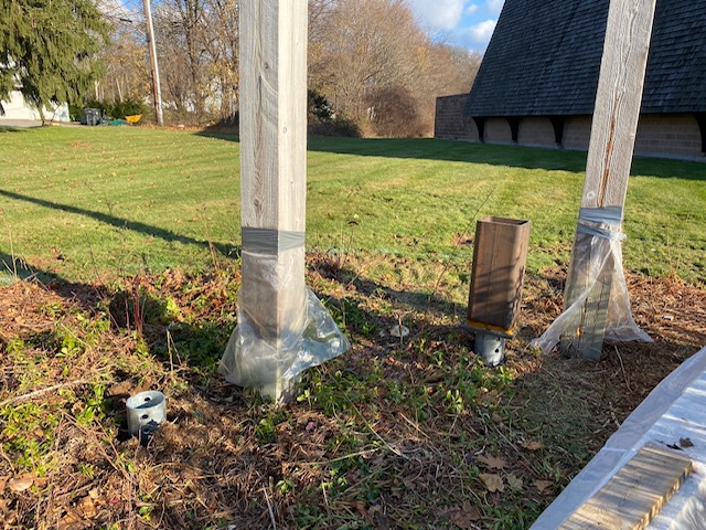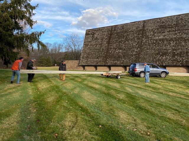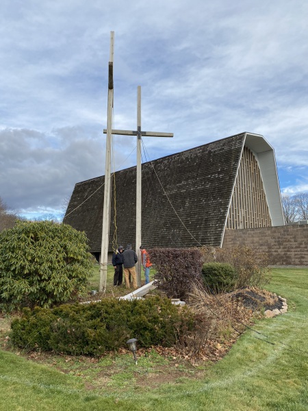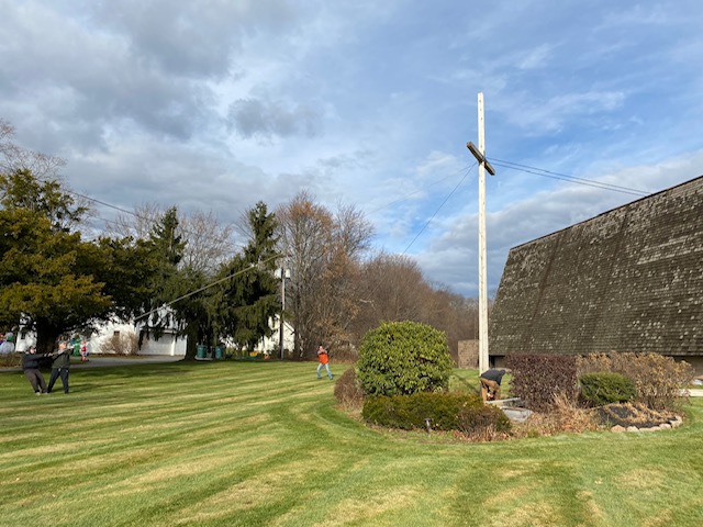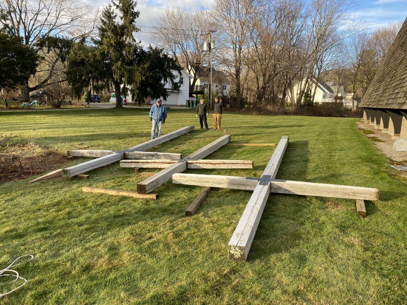 No deaths or injuries…close call perhaps. A great time was had by all. Sore muscles tomorrow. Good opportunity to do some restorative work on crosses and get them back up. Close encounter reveals how big these babies are. More work needs to be done but with luck and good weather we will have them up by………..Christmas?